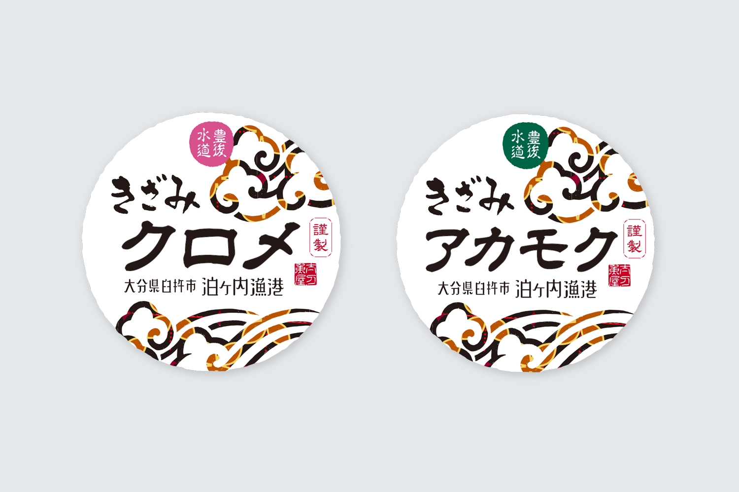 漁から加工まで自分たちで行っている現場感を篆書体の印で表現しました。